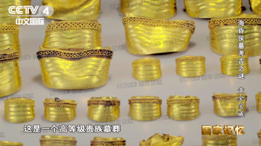 金光闪闪的马蹄金、麟趾金、金饼,周身饰有精美纹饰,纯度高达99%。2015年出土于海昏侯墓,现存于南昌汉代海昏侯国遗址博物馆。