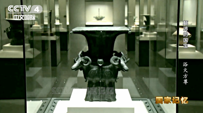 四羊方尊是商晚期的作品,其肩部、腹部与足部为一个整体,被巧妙地设计成四只卷角羊各居一隅的造型;羊身浮雕雷纹与龙纹交织,极为精美,被誉为“臻于极致的青铜典范”。1938年出土于湖南省宁乡县,如今陈列在国家博物馆。